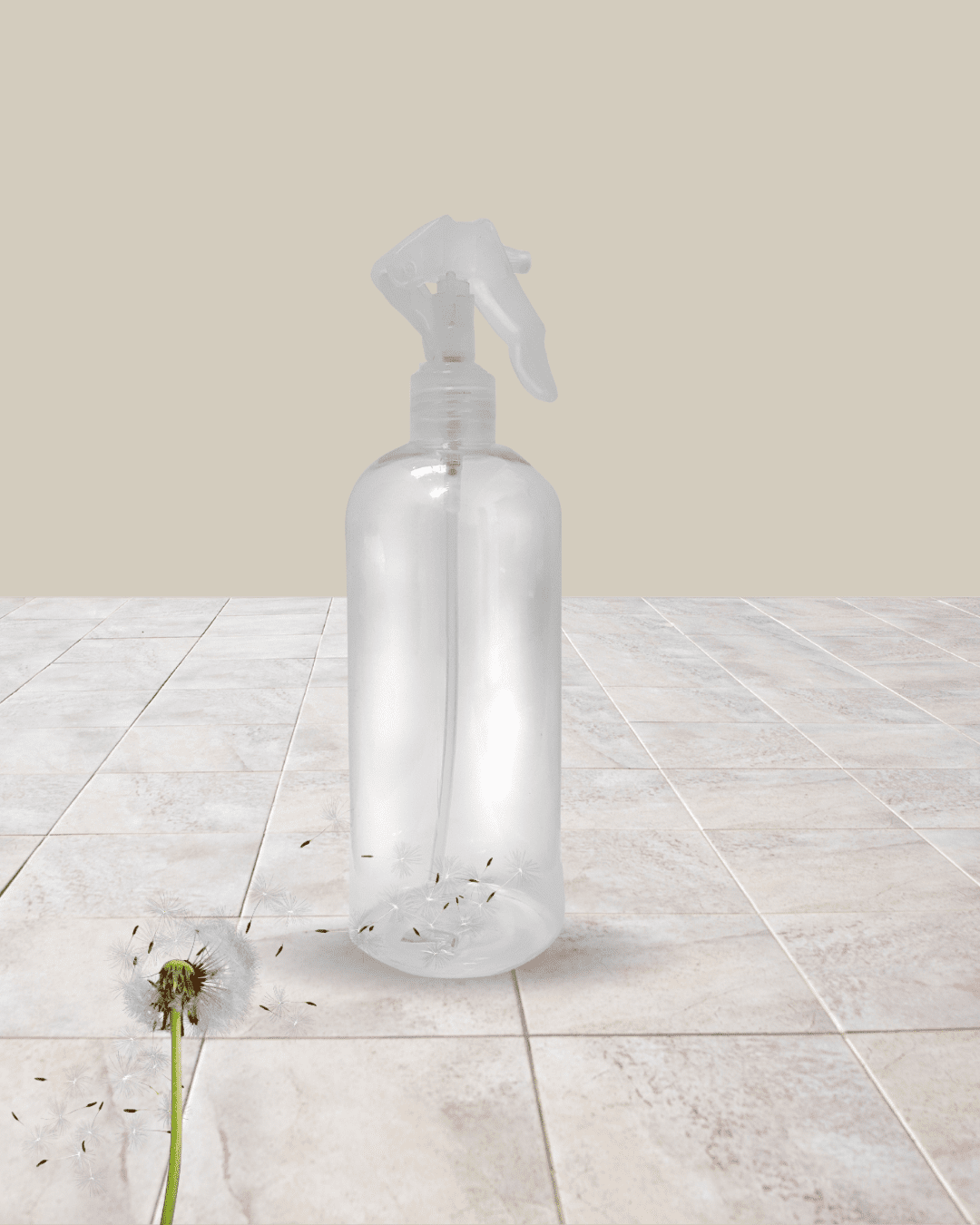 A durable, transparent PET clear spray bottle with a trigger nozzle, ideal for dispensing cleaning solutions or water evenly on surfaces.